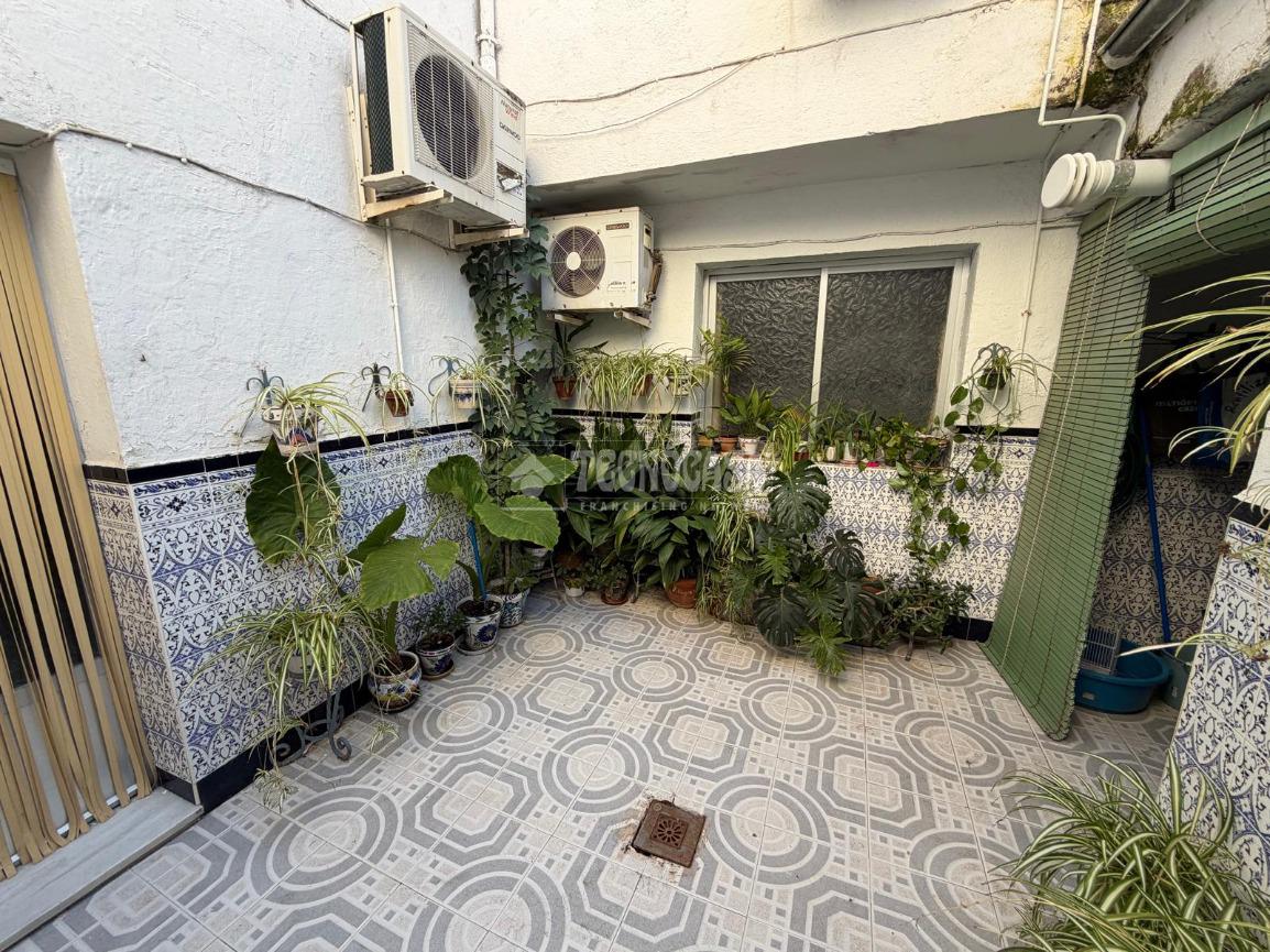 La vivienda dispone en su planta baja de un recibidor que da acceso, a mano derecha, a un dormitorio equipado con aire acondicionado y, a mano izquierda, a una estancia acondicionada actualmente como salita, con posibilidad de habilitarla como dormitorio adicional. A través del pasillo se accede a un acogedor salón, comunicado directamente con una cocina totalmente equipada. Desde la cocina se accede al baño principal, el cual cuenta con salida a un lavadero y, a su vez, al patio central de la vivienda.